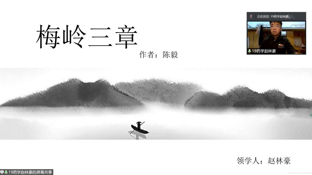 活动伊始,预备党员赵林豪作为领学人带领大家一起阅读了《梅岭三章》,通过视频介绍诗词的创作历史背景,带领同学们感悟革命先辈陈毅同志对党和人民的赤诚之心,对共产主义事业无限的无限热忱,以及大无畏英雄主义与乐观主义精神。在分享交流环节,同学们积极踊跃,主动地交流自己的感悟。积极分子陈莉萌动情地说到:“祖国如有难,吾应作前锋,立足岗位,勤奋敬业,坚定信念,争当优秀共产党员。