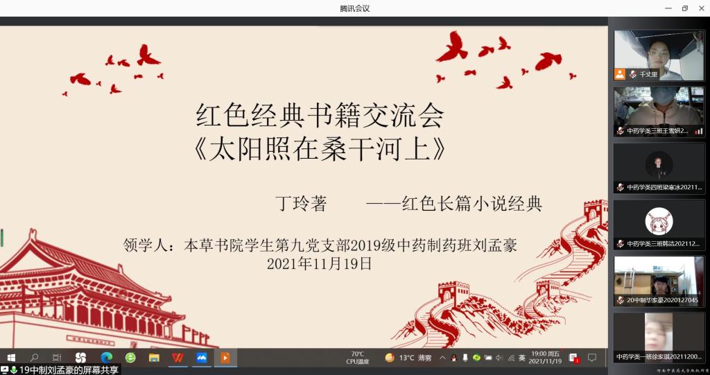 举办“学党史 感党恩”党史学习教育系列活动之“红色书籍交流会”,2021年11月19日以线上腾讯会议的形式开展第四期《太阳照在桑干河上》交流会。
