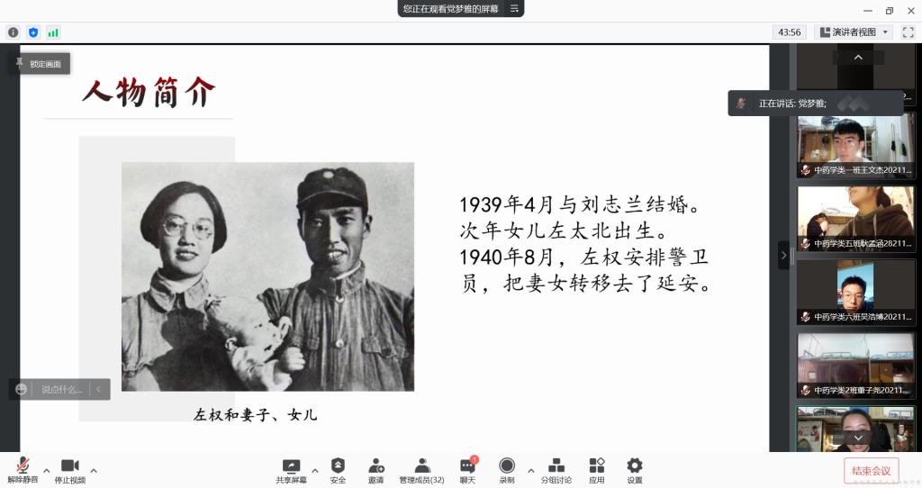本网讯(文/克迎迎 张正 图/祝月重)为深化党史学习教育成效,17k小说 举办“学党史 感党恩”党史学习教育系列活动之“红色书信朗读会”,2021年11月27日于腾讯会议开展第四期《左权将军写给妻子的最后一封信》。