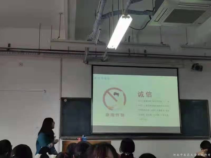 在活动过程中,各团支部书记借助PPT等形式,带领同学们学习诚信考试相关内容,让同学们深刻认识并理解诚信考试的意义。接着,团支书宣读“诚信考试,从我做起”倡议书,号召同学们要端正学习态度,撸起袖子加油干,用自己的努力去创造属于自己的未来。随后,优秀团员代表向同学们介绍自己的复习方法,帮助大家更好的迎接接下来的考试。最后,全体同学共同进行诚信考试宣誓,在大家坚定的宣誓声中主题团日活动落下帷幕。