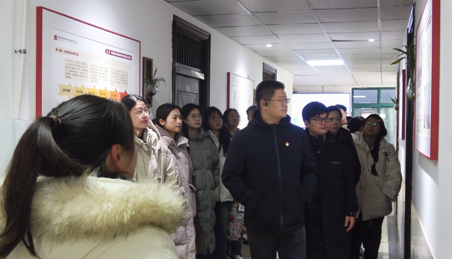 参观学习,共享育人成果。支部党员同志首先参观了学校立德树人工作巡礼展。通过学校顶层设计、部门共同参与、基层全面推动、形成特色品牌四个篇章,帮助党员师生全面了解学校五年来落实立德树人根本任务的实践与成效;充分认识学校在强化党建引领、夯实学科根基、推动守正创新、提升育人质量方面做出的努力与创新;深刻领悟学校充分挖掘中医药文化的人文价值与育人作用,形成的富有本土性、时代性和创新性的中医药文化育人成果。