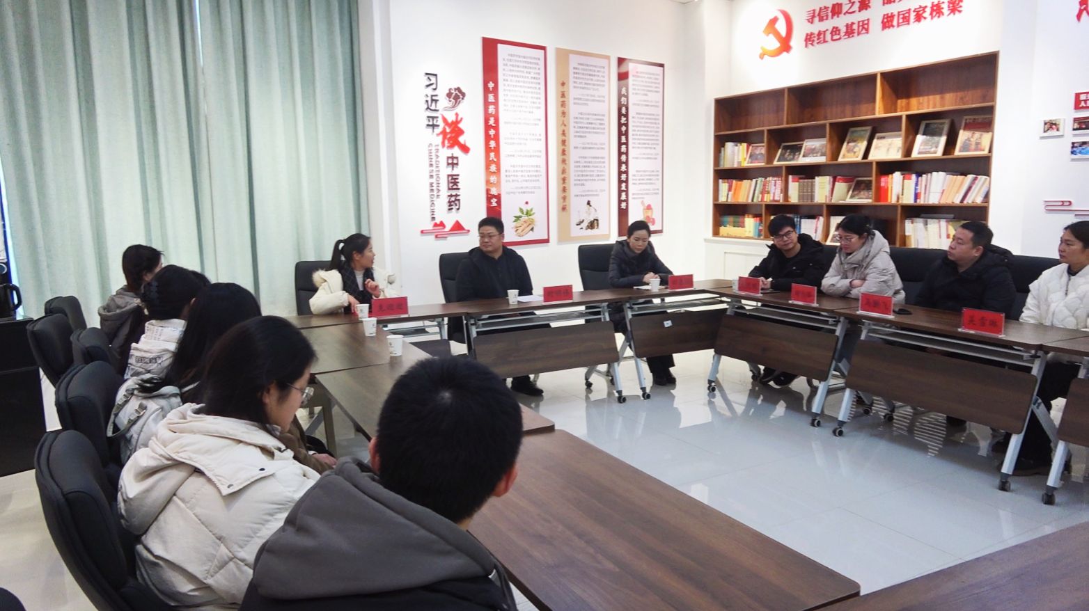 学生第七党支部书记克迎迎向大家介绍了书院社区党建工作思路及学生第七党支部“党建+学术”特色工作品牌;治未病科主任时明伟介绍了支部基本情况及党建业务融合建设情况。大家纷纷表示,此次支部共建活动进一步增进了校本部与附属医院党支部之间的沟通与交流,为支部间互学互鉴提供了有利平台。