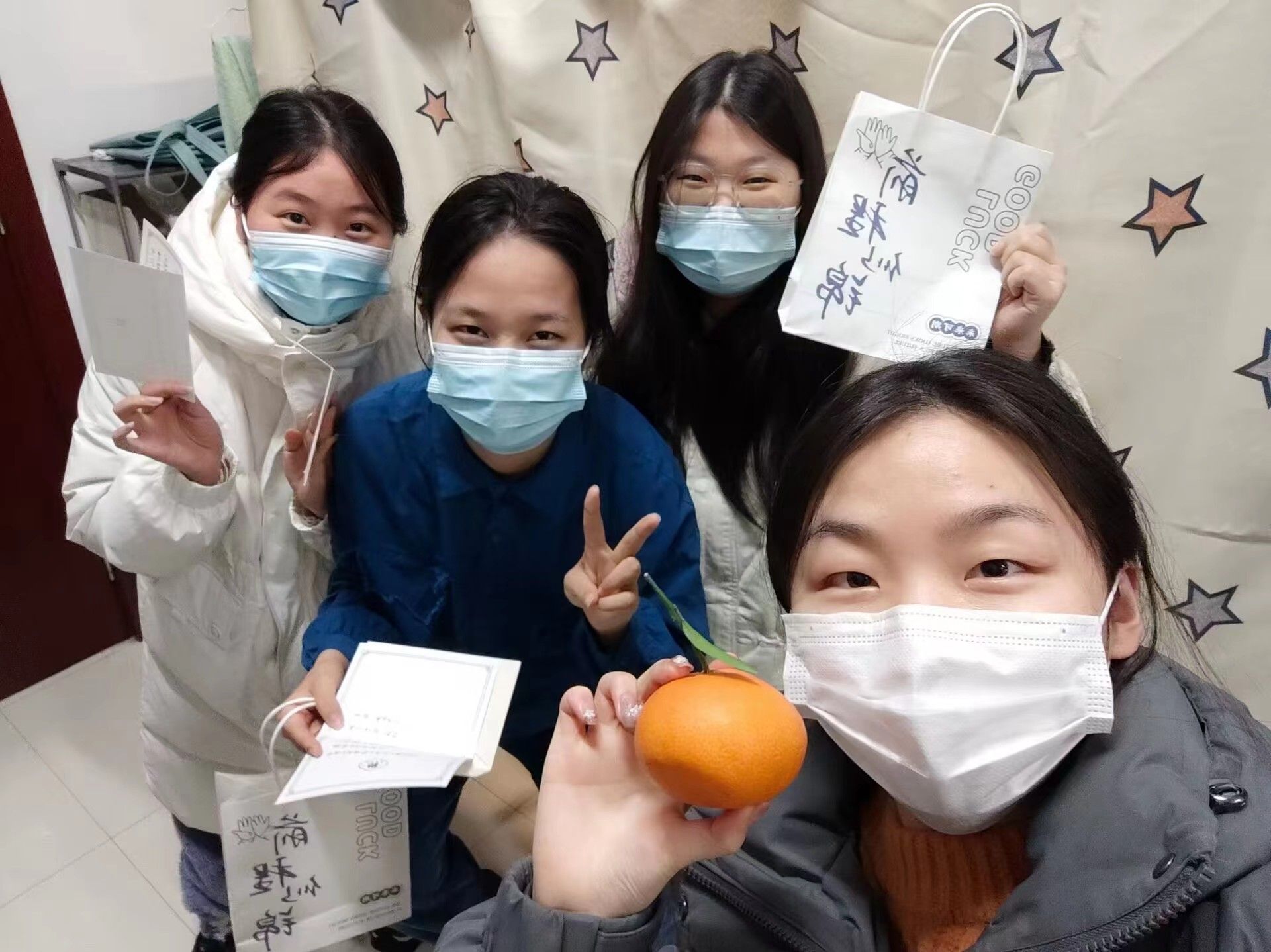 亲和的交流,温馨的嘱托,代表了书院的关怀和美好祝福,寓意满满的礼物,让备战考研的同学们倍感贴心和温暖,希望2020级同学们心想事“橙”,旗开得胜,一“研”为定,前程似锦。
