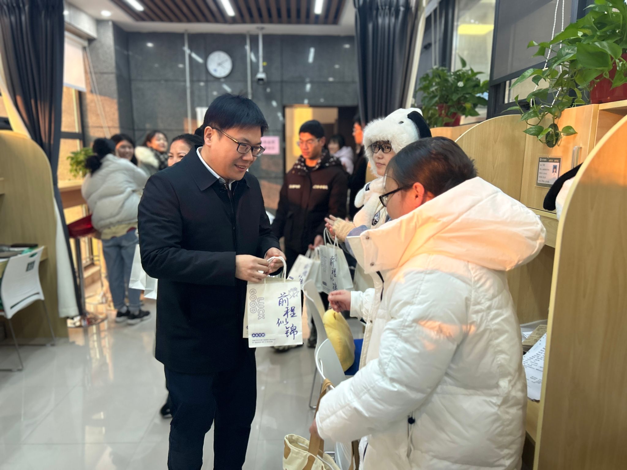 副书记、副院长刘雅琳、副书记李京华、副院长邢瑶带领毕业班辅导员看望慰问2020级考研同学,为“研”途上的学子送去“前程似锦”大礼包。
