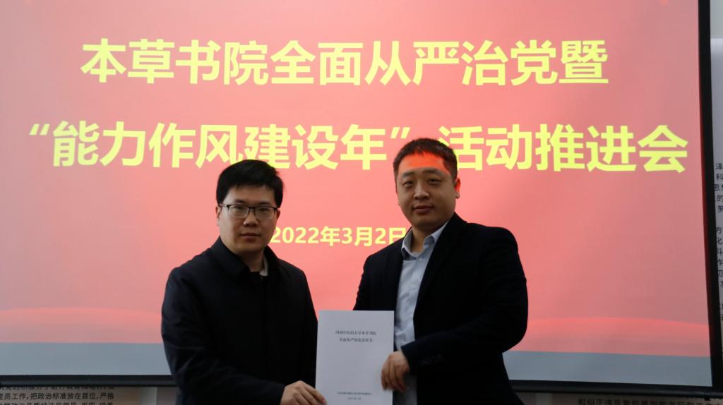 中心负责人向书院递交“全面从严治党责任书”及“重点工作任务书”