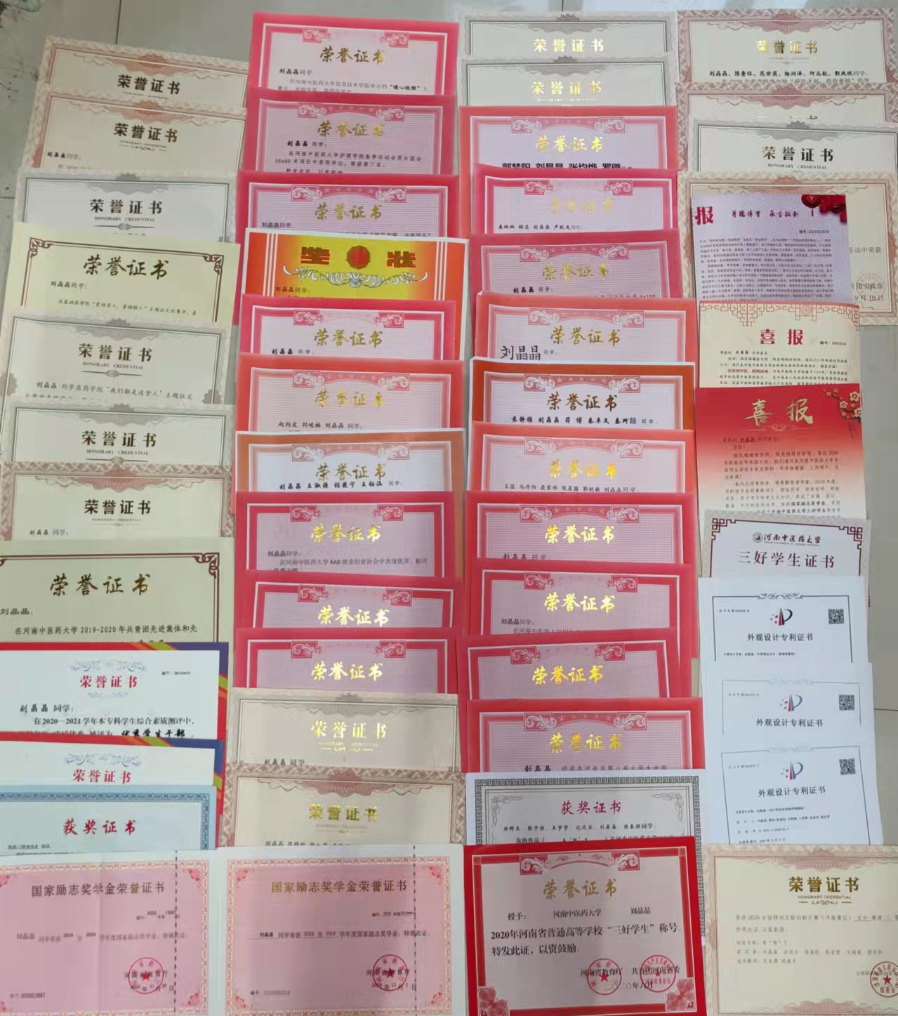 四年间,刘晶晶时刻牢记“厚德博学,守正创新”的校训,用勤学夯实专业技能,用创新践行知行合一,用一腔热血谱写自己的奋斗青春。在校期间,她勤勤恳恳,努力学习,考入中药传承班,连续三年综合素质排名位居班级前五,获得各类奖学金5项,荣获校内各项荣誉39项;她善于思考,投身科研,积极参与大学生创新创业竞赛,在校级以上各类竞赛中获奖10余项;她热心社会公益,参与志愿服务,在疫情最严重的时期主动参与到家乡疫情联防联控和社区防疫工作中,累计志愿服务时长144小时。经过自身不懈努力,如今刘晶晶已是中国药科大学药物代谢动力学专业拟录取研究生。刘晶晶说:“中医药文化博大精深,我才刚刚走进中医药的大门,还想走的更高更远,接过中医药文化‘ 传承’的接力棒,为人类健康贡献自己的力量。”