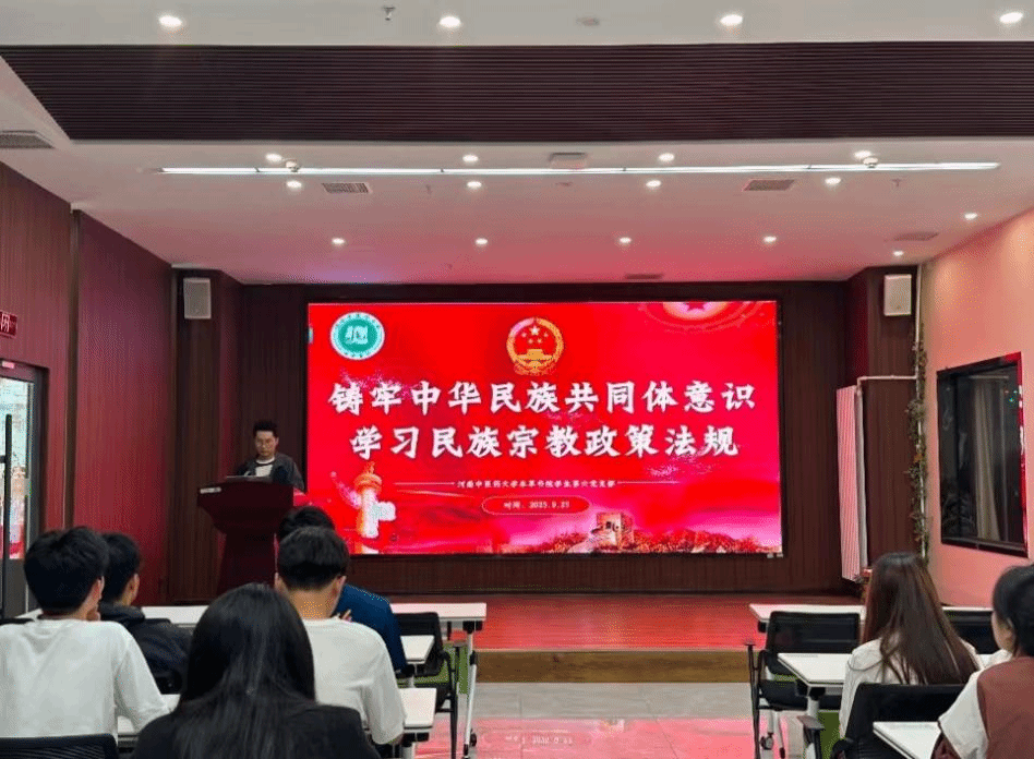 书院高度重视本次宣传月活动,将其作为深化民族团结进步教育、提升宗教工作能力的重要抓手,通过多种形式扎实推进教育学习。各党支部、团支部充分发挥战斗堡垒与先锋模范作用,积极组织专题学习和实践活动。党支部通过“三会一课”、主题党日等形式,深入学习民族宗教政策法规与中华民族共同体意识相关理论。学生第一党支部于9月18日举办“从伟大抗战精神到构建人类命运共同体”主题党日活动,回顾抗战历史,激发爱国情怀;学生第三党支部于9月25日开展“同心筑梦跟党走,共绘民族团结同心圆”主题党日,学习《宗教事务条例》,发起民族团结实践倡议;学生第六党支部于9月23日组织专题学习,教师党员带头分享见解,深化支部成员对铸牢中华民族共同体意识的理解。