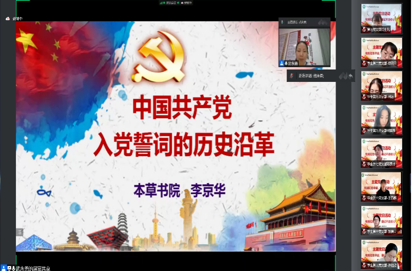 党委副书记李京华以《中国共产党入党誓词的历史沿革》为题,为全体师生党员上专题党课。她从建党初期、抗日战争、解放战争、新中国成立、改革开放等不同时期入党誓词的变化,分析了入党誓词的深刻内涵,揭示了我们党的建设历程,展现了我们共产党人矢志不渝的共产主义理想和为民情怀。入党誓词是党对党员言行要求的“指南针”,也是党员对党立下承诺的“军令状”,希望书院全体师生党员以昂扬的斗志、良好的风貌、务实的作风积极投入到书院建设和自我成长中去,用实际行动践行共产党人的初心与使命。