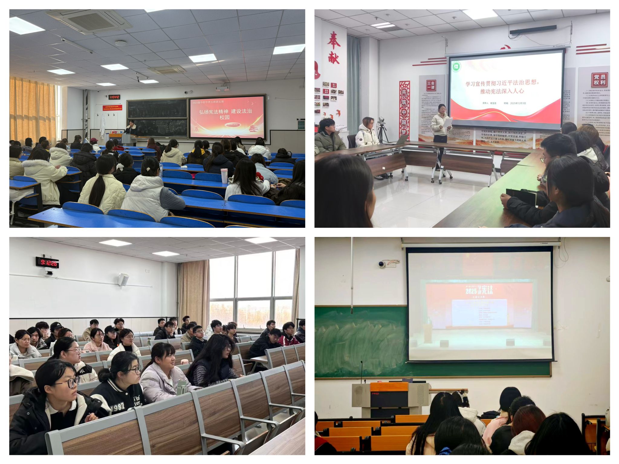 严格落实学校《关于开展2025年宪法宣传周活动实施方案》要求,以“学习宣传贯彻习近平法治思想,推动宪法深入人心”为主题,依托党支部与团支部协同发力,通过线上线下多维度融合,以主题班会、融媒推文等丰富形式,扎实开展宪法宣传周系列活动。