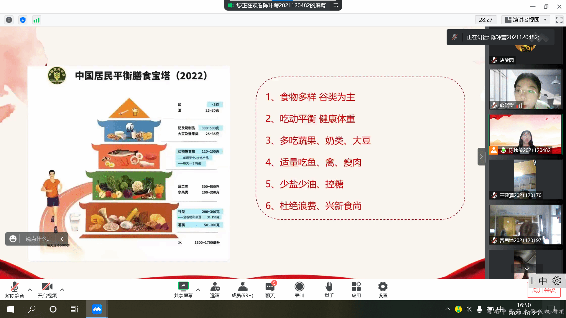 活动伊始,各班团支书以播放视频、PPT展示等方式帮助大家全面了解粮食的播种、养植、收割和加工等生产过程,并带领大家了解我国曾经因为粮食短缺而忍饥挨饿的困苦历史,同时以袁隆平的事迹让同学们看到了农业科研工作者为解决人民粮食问题而刻苦研究的艰辛,深刻领会习近平总书记号召“要进一步加强宣传教育,切实培养节约习惯,在全社会营造浪费可耻、节约光荣的氛围”这一重要指示的重大意义。随后,同学们也积极踊跃交流,讨论餐饮浪费的原因和解决方法,大家纷纷表示,作为共青团员,要率先垂范,自觉树立节约意识,切实承担起新时代青年的历史责任。