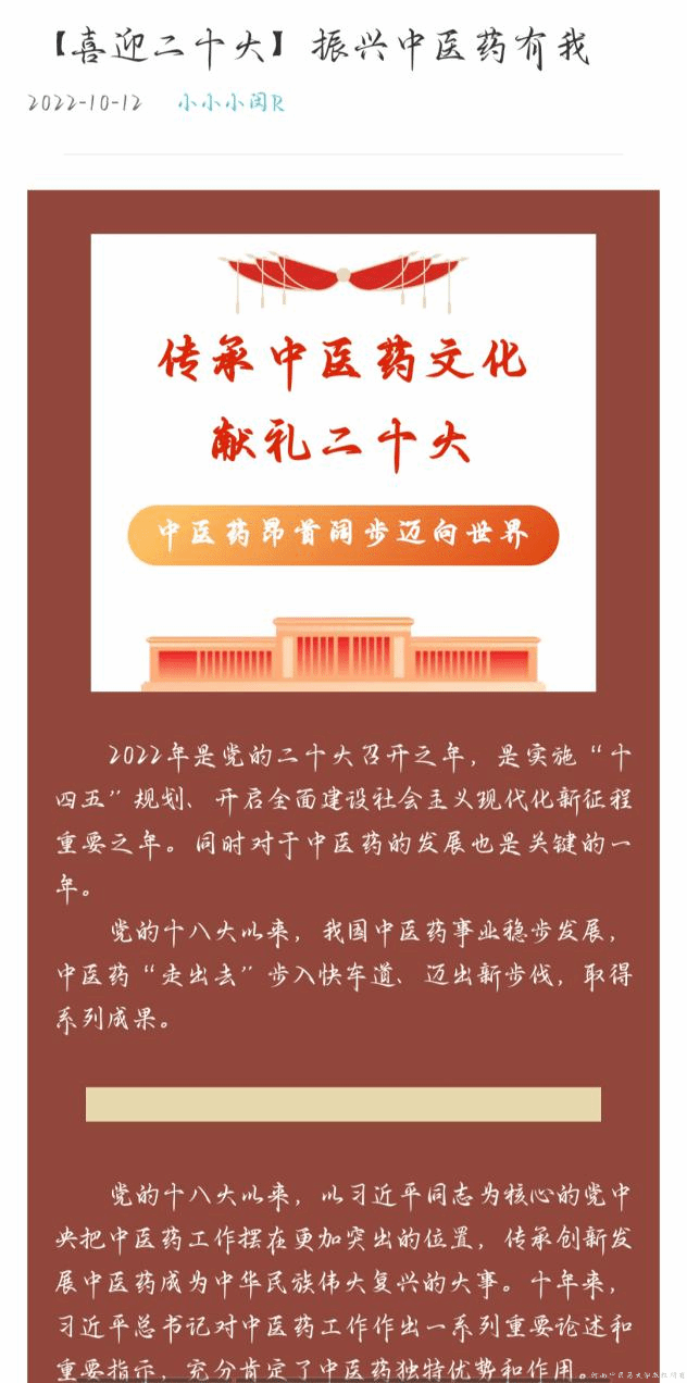 ”融媒体网宣部举办“领会中医药文化,献礼党的二十大”线上推文征集活动,书院融媒体中心网络宣传部全体成员参加。