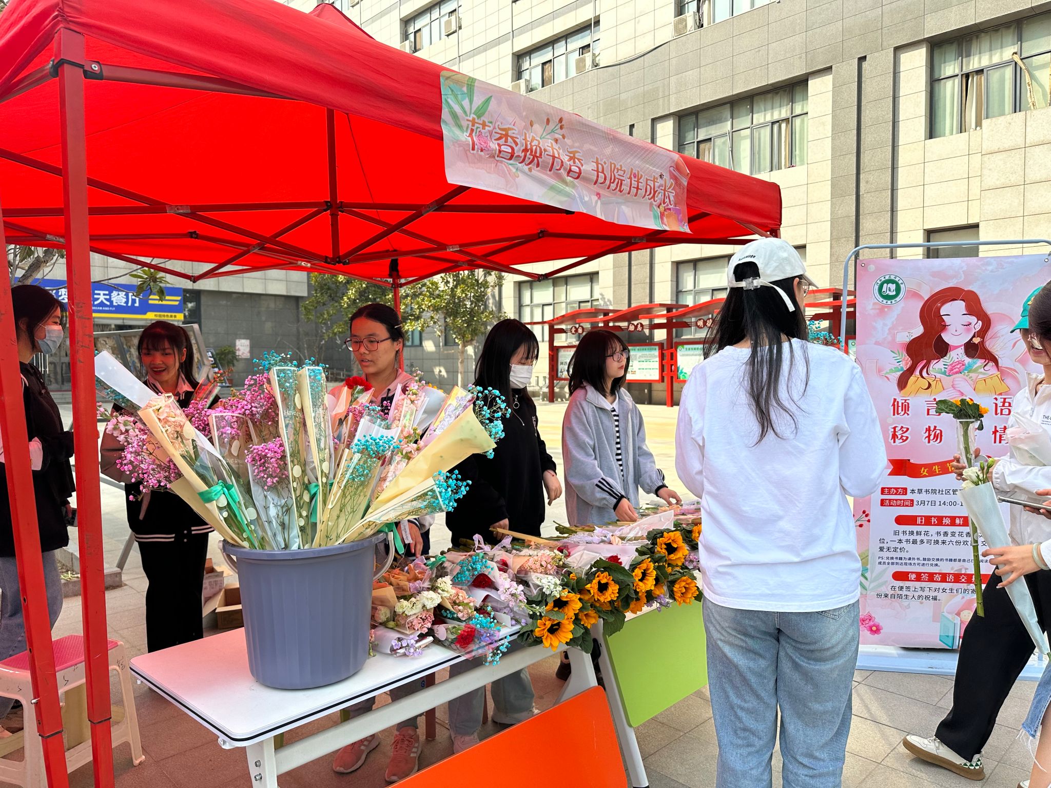 广场举办“花香换书香,书院伴成长”以书换花女生节特色活动。