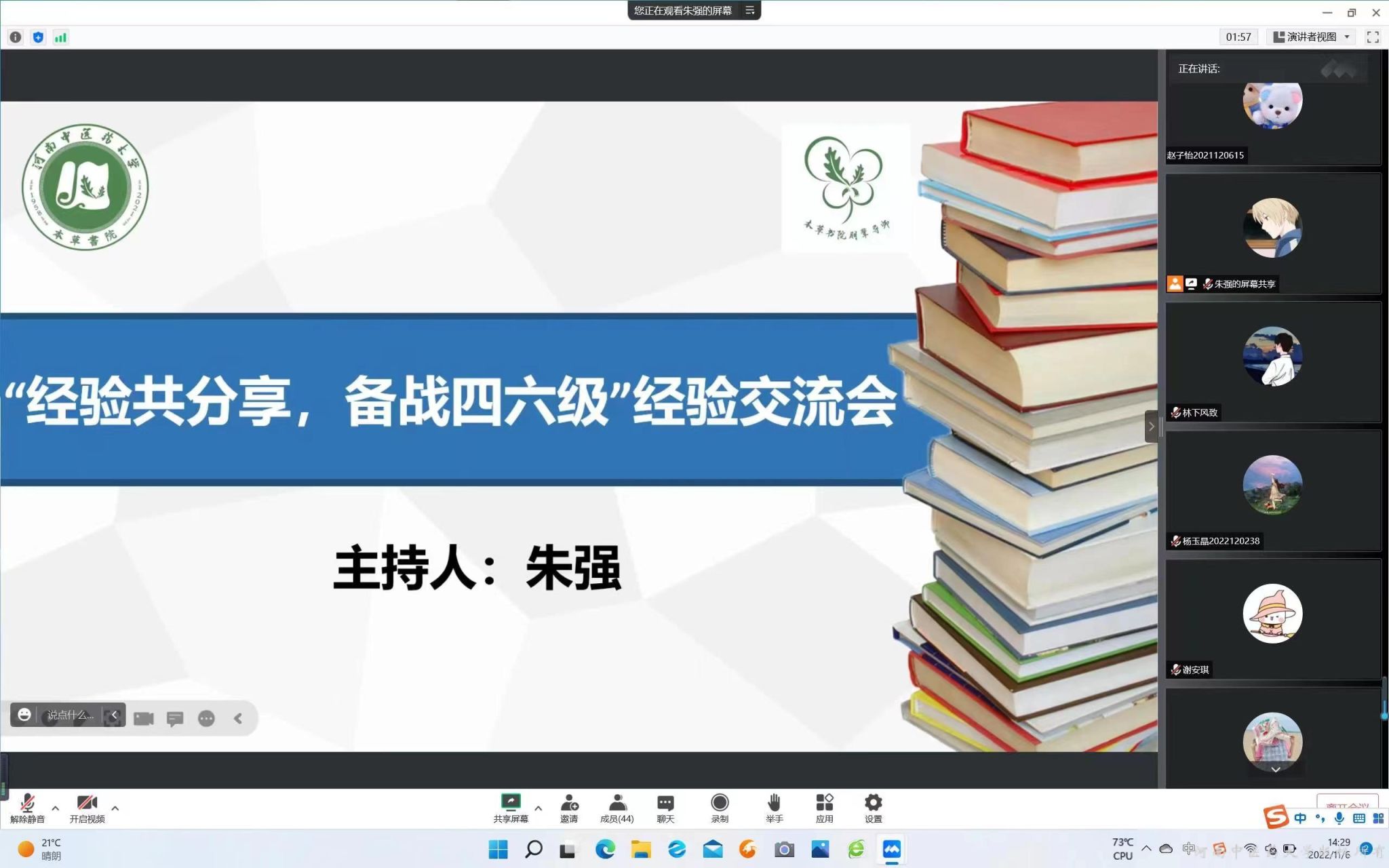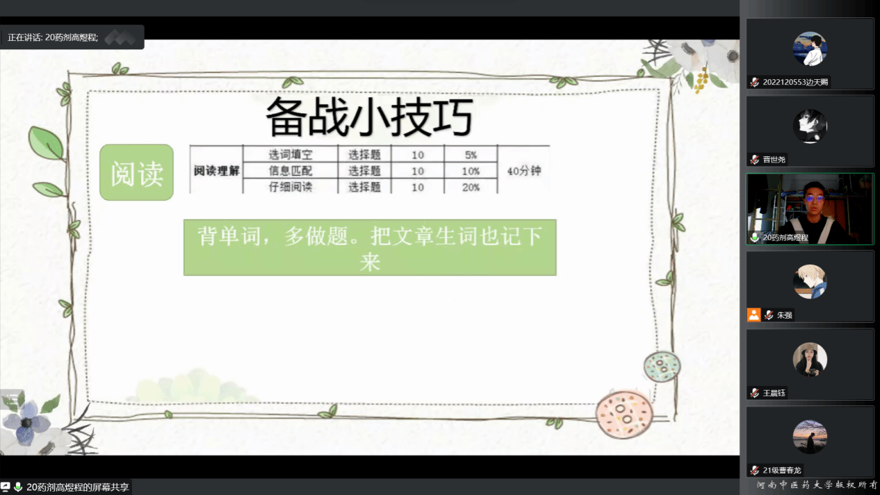 朋辈导师于2022年11月6日线上举办“经验共分享,备战四六级”经验交流会,活动邀请了高煜程和张陶然同学为大家分享经验。
