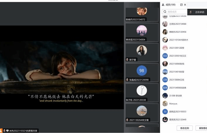 同学们线上观看《圆梦巨人》