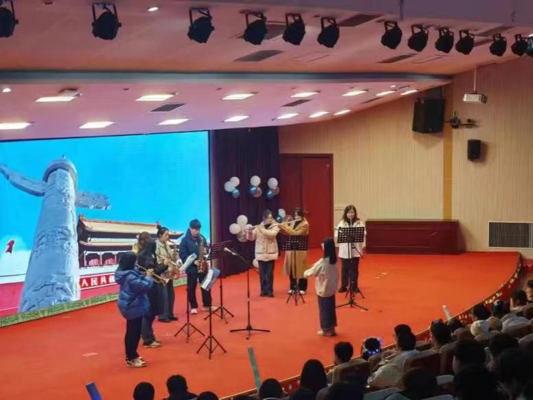 的热爱就像灿烂、炽热、永远不落的太阳;器乐演奏《我和我的祖国》奏响西洋乐器与中式乐器的碰撞,昂扬向上,曲声嘹亮,燃起爱国热情;情景剧《父亲写的散文诗》,复刻经典生活场景,歌唱了父亲对孩子深沉又无言的爱的,引导同学们关心父母,弘扬以孝为先的中华传统美德。活动穿插抽奖环节,由主持人随机抽取座号号牌,选取中奖观众,赠予精美礼品。最后,在合唱《我们一起远航》中迎来了音乐节的尾声。