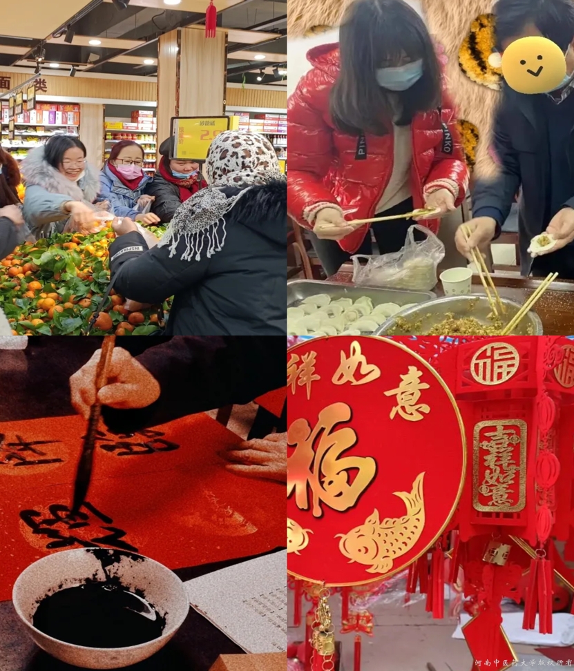 本次年味征集活动主要有图片或视频vlog两种表现形式。参赛人员从备年货、贴对联、全家福、家乡习俗等与春节相关的方面记录自己眼中的中国年,使得本次活动涌现出了许多优秀作品。其中2021级中药学类三班张力苛的图文作品《写春联》从艺术和习俗的角度将新春的美好寓意其中——春联句句寓美好,祝福裹挟好运到,虎虎生威新年好!同时2021级中药学类六班徐丹阳的vlog作品《剪窗花》捻裁剪展之巧妙让大家沉醉于纸窗间交织的光影。随处可见的灯笼挂饰、对联福字的小铺子、充满艺术气息的窗花剪纸、办年货、写春联,同学们用自己的镜头记录下心中每一帧热闹团圆的景象,以身边之年味汇聚书院大团圆。