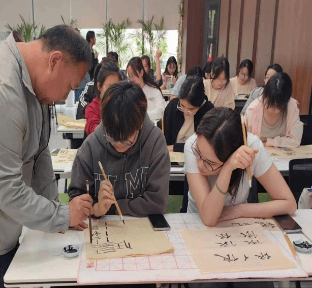 培训开展过程中,陈东坡以书法演变史为脉络,教授隶书的基础写作技巧,指导同学们书写基本笔画,再延伸到自己的名字。陈东坡老师寓教于行,亲自指导大家书写练习。活动过程中学习氛围浓厚,师生互动频繁。培训结束时,同学们互相分享感受,纷纷表示在这次活动中收获颇丰,在提升自己书法写作水平的同时也感受到文字书写的结构章法魅力,期待后续能继续接受陈老师更系统专业的教学。
