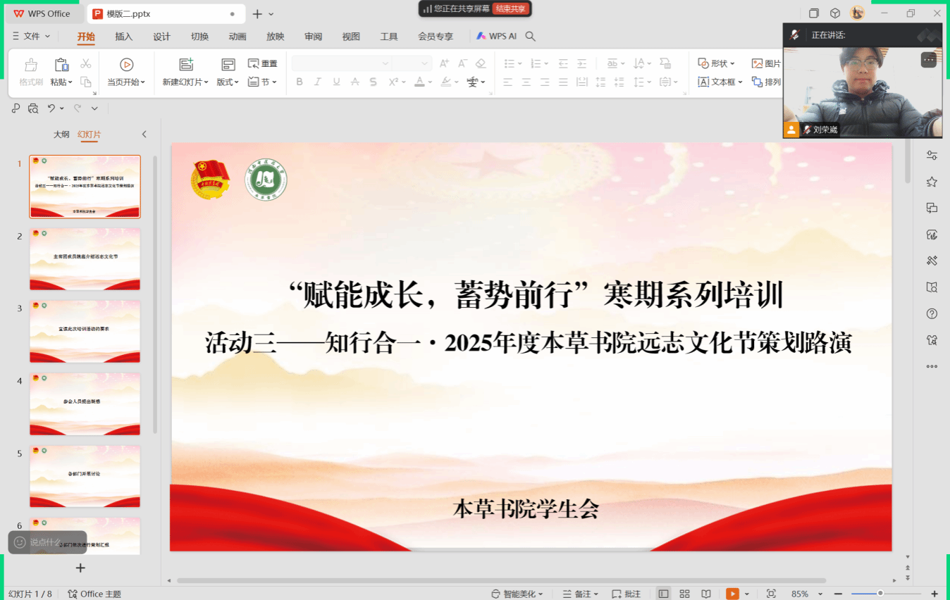 在线上举办了主题为“知行合一·2025年度远志文化节”培训路演活动,全体学生会干部参与其中。