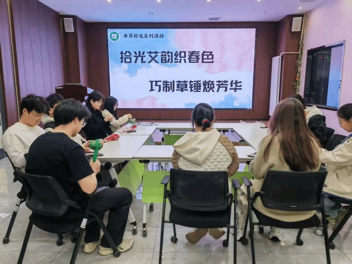 于远志学堂举办了“拾光艾韵织春色,巧制草锤焕芳华”主题活动,本次活动由中医药养生协会承办,吸引全校共60名学生参与。