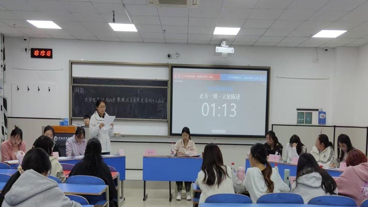 在教学楼A433举办了“思辨赋能,语绽锋芒”辩论赛决赛,经过初赛和复赛的激烈角逐,共8名思辨精英进入决赛。