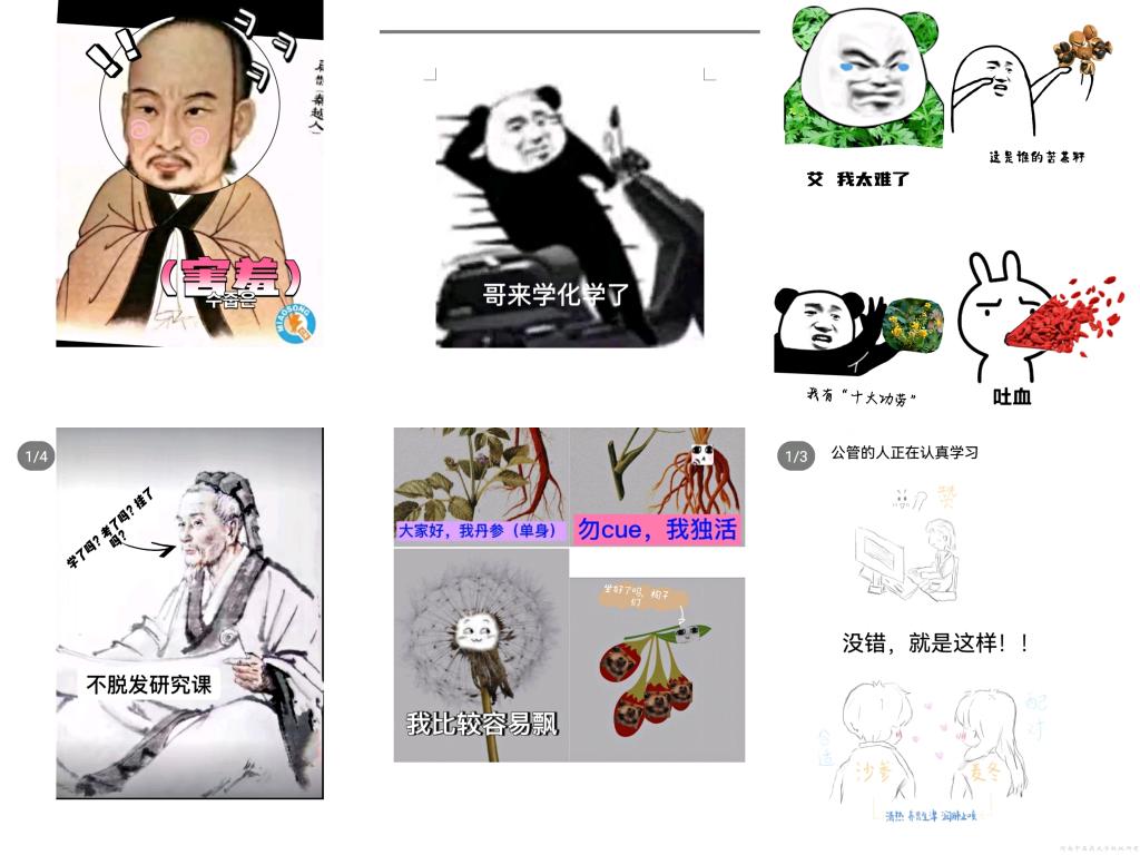 医学和药学两大特色,充分发挥想象力和创造力,交出了一份又一份高质量的作品,带给人们欢乐的同时又给人以医学启迪,展现浓厚的中医药色彩。其中2022级中药学类何淑霓同学的作品尤为突出,经典的医学人物用现代特效修饰并加以生动有趣的文字,将表情包制作的活灵活现,趣味横生,获得大家的一致认可和广泛好评。