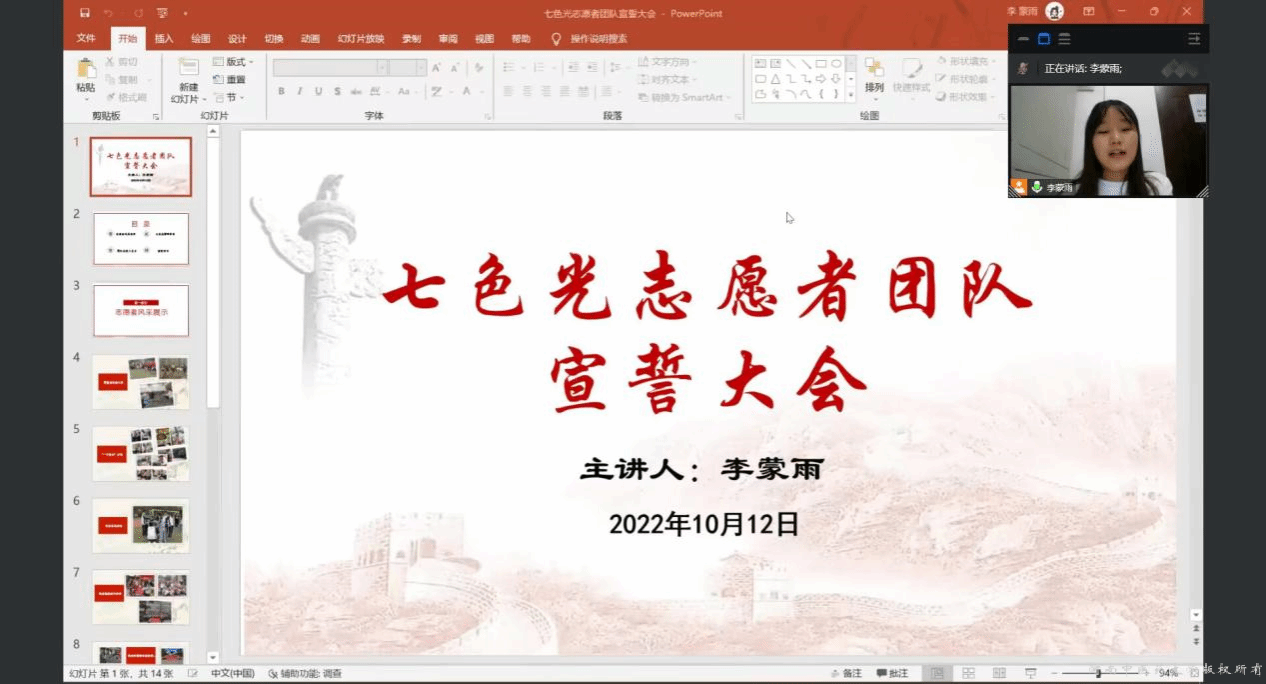七色光志愿者团队于10月12日于线上举办宣誓大会,本次会议共116人参与。