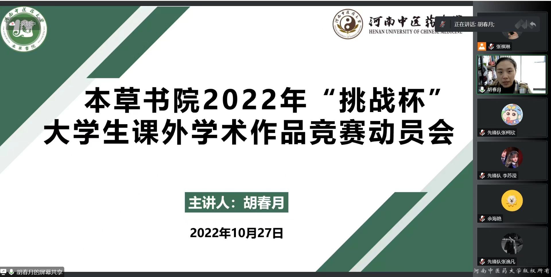 本网讯(文/胡春月 张祺琳 图/张祺琳)为响应以创新为支撑建设科技强国的号召,激发同学们创新创业热情,2022年10月27日,17k小说 在线上召开2022年挑战杯大学生课外学术科技作品竞赛动员会,会议由17k小说 素能拓展中心胡春月老师主持,参赛学生、17k小说 创新创业先锋队、双创课程化成员等共计290余人参加。