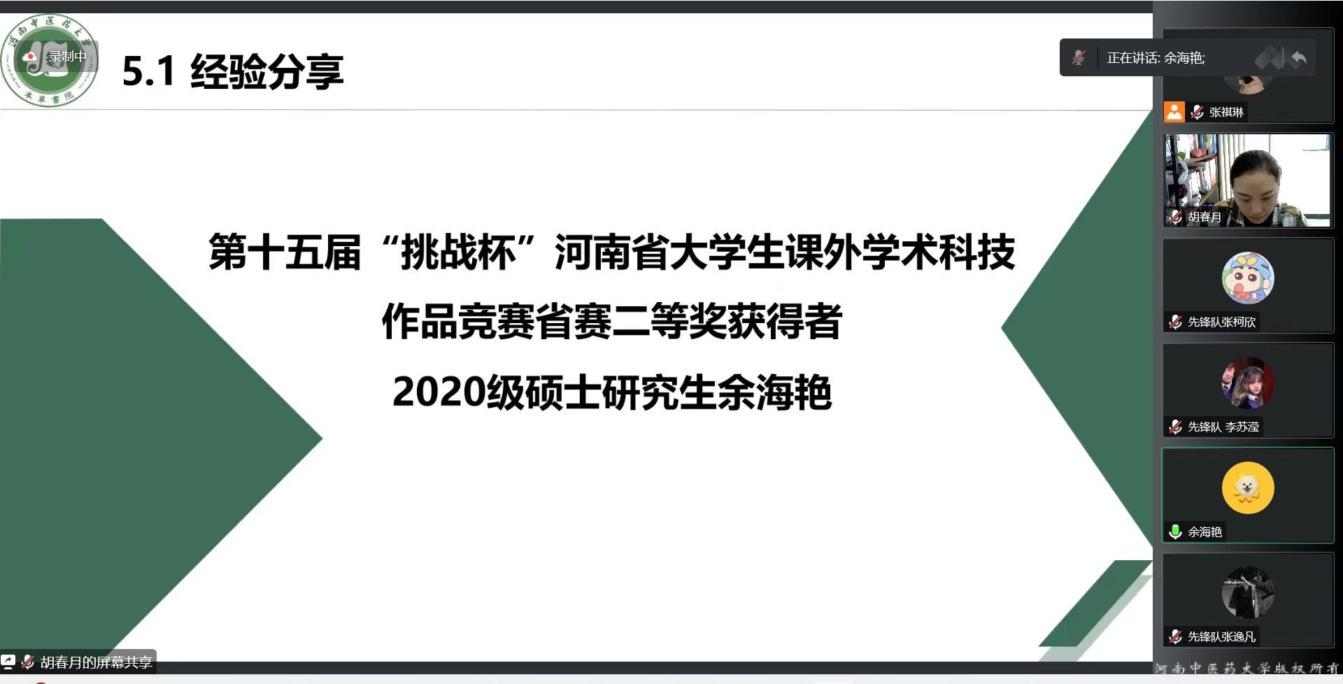 获奖代表余海艳分享参赛经验