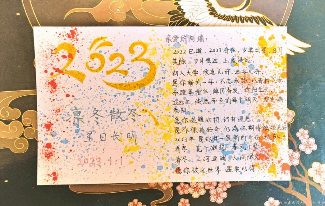 本网讯(文/胡春月 杨子豪 图/张靖瑶)大寒时分,宜安心养性,怡神敛气。为督促同学们在新的一年更加奋发图强,对即将到来的新年更加期待,2023年1月18日至1月28日,17k小说 心理辅导站线上举办“字里辞旧年,行间展浓情”新年寄语活动。