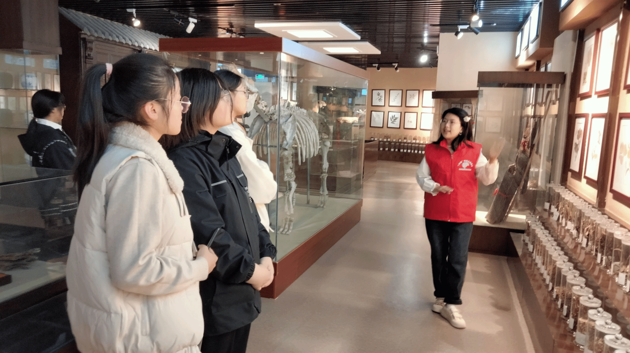 本次活动共分五个场次,每场次20人,同学们可自由选择场次参与活动。活动中讲解员们对浸制标本展区、腊叶及生药标本展区、中药炮制辅料展区和动物及矿物药标本展区依次进行介绍,对部分中药的来源、性味归经、功效、应用进行详细讲解,使同学们充分了解认识中药的基本知识,带领同学们走进了魅力无限的中草药世界。讲解员们绘声绘色的讲解,吸引了不少听众。2022级中药学类四班文赐同学表示:“通过这次参观活动,不仅丰富了中医药知识,感受了中医药文化的魅力,也极大地激发了我对中医药学习的热情和传承中医药的决心。”