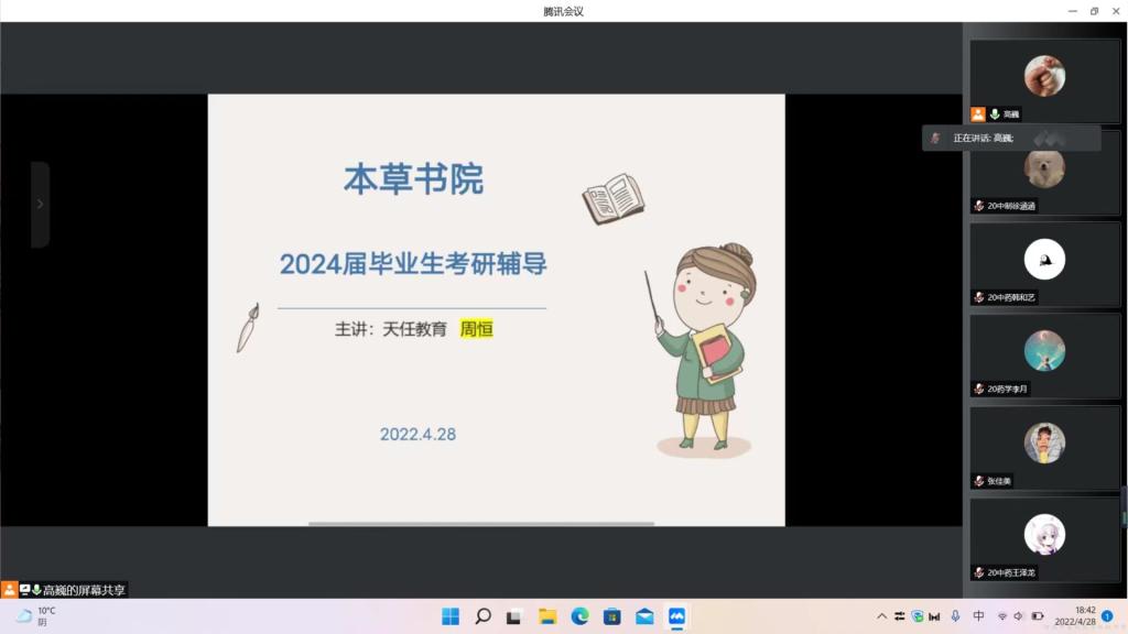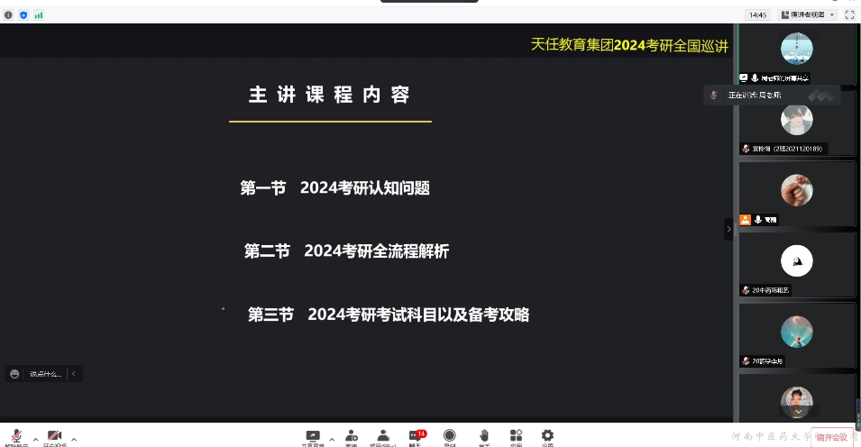 邀请天任教育资深考研辅导专家周恒老师为2024届毕业生进行线上考研辅导,双创孵化中心主任高巍老师担任主持人。