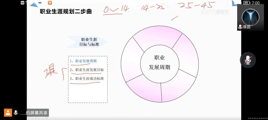 本次活动通过腾讯会议开展,宣讲人通过介绍职业生涯的不同阶段向同学们详细讲述了职业生涯规划的作用及重要性。随后,就职业发展周期、职业生涯发展目标和职业生涯成功标准为同学们提供了清晰的职业规划思路。最后,同学们就宣讲内容分享自身收获。李茹月同学认为,正确地分析自身性格有助于进行职业发展规划,同时分析了适合自己的职业。同学们认真听讲,并表示收获颇丰。