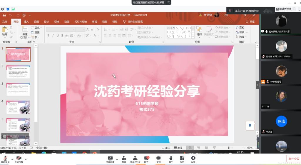 来自不同专业、分别考取本校和郑州大学、沈阳药科大学、北京中医药大学等国内知名高校研究生的15名2022届毕业生分享了自己的考研经验。除了备考方法,还向同学们推荐了学习英语和政治的书籍,以及相关的学习视频和APP,建议同学们一定要持之以恒,不仅要注重量更要注重质。对于自己的弱点一定要进行针对性训练,及时练习,不断总结。同时,告诫同学们,备考过程中不要过度紧张,保持积极向上的心态,注意加强体育锻炼,才能提高学习效率。最后,对同学们在备考过程中存在的问题进行了答疑解惑,给将要考研的学弟学妹加油鼓劲。
