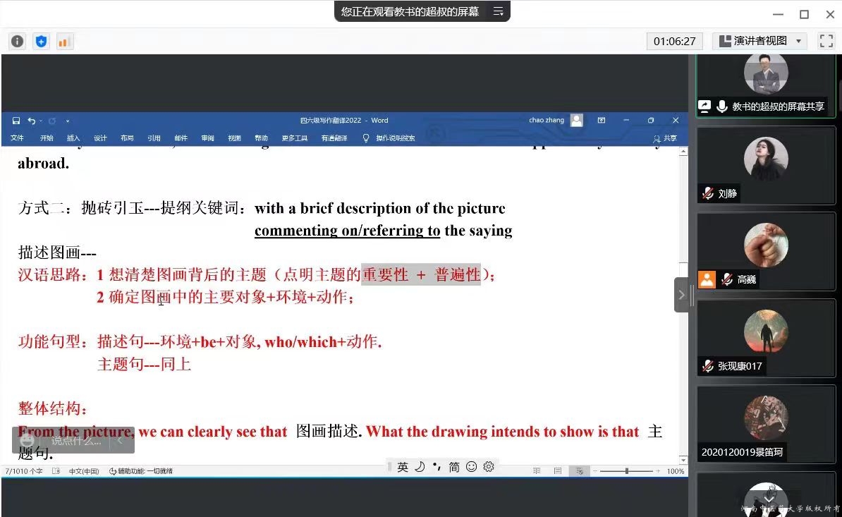 邀请天任教育资深英语辅导专家张超老师于2022年5月25日开展线上“四六级辅导”讲座,双创孵化中心主任高巍担任主持人。