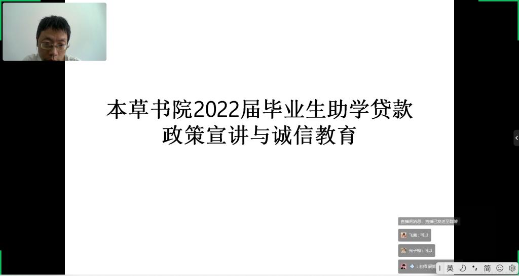 本网讯(文/刘炳 图/刘炳)为积极响应学校关于开展毕业生“五个一”主题教育活动号召,加强对国家助学贷款学生的诚信教育,提高毕业生还贷意识,17k小说 于2022年5月26日举行线上2022届毕业生助学贷款政策宣讲与诚信教育,17k小说 2022届全部有高校贷款的毕业生参加了此次线上活动,17k小说 资助专员刘炳担任主讲人。