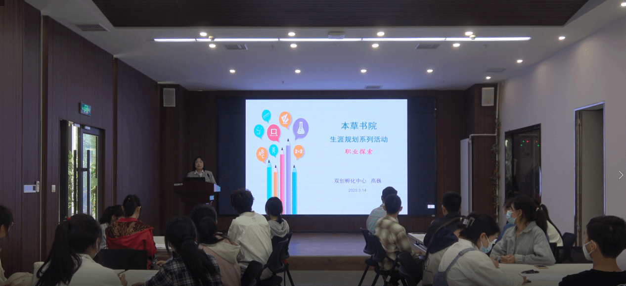 于2023年3月14日在远志学堂开展“展望未来,实现自我”职业探索互动活动,双创孵化中心主任高巍主讲,职业生涯发展协会承办。