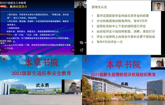 会上,赵云介绍了目前国家就业政策、就业形势,药学院相关专业考研就业情况,引导新生树立正确的就业观,及早做好大学生涯规划。资助专员刘炳围绕“资助和诚信教育”,结合自己多年的资助工作经验,将高校奖贷困补等一系列资助体系作了详细解读,并且强调了诚信的重要性,使同学们对高校资助政策有了进一步的认识。辅导员武永勇对新生进行适应性教育、安全教育和意识形态教育,鼓励同学们以积极心态尽快适应大学生活,树立正确的宗教观和纪律意识,注意防范诈骗、传销等问题。辅导员高巍对新生进行了疫情防控及校规校纪教育,提醒大家疫情不可忽视,仍要注意自身安全做好防控,同时解读了学校的各项规章制度,告诫大家要自觉遵规守纪,注重自我管理和自身能力发展。