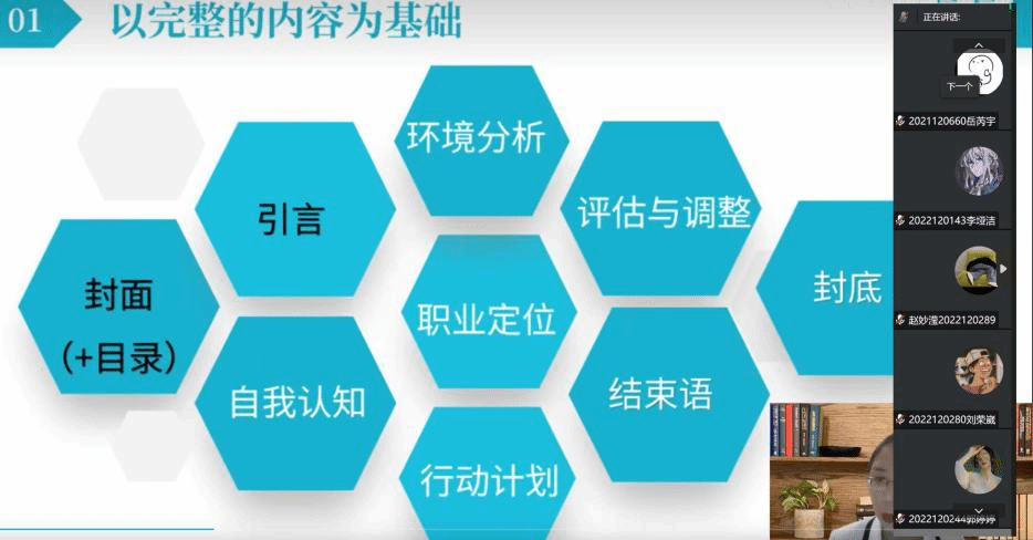 活动伊始,主持人李彦青就当前就业形势阐述了大学生撰写生涯规划书的现实意义,并抛出问题。与会同学积极发言,热情地互动交流,分享各自观点。活动中,主持人细述活动意义、活动要求和注意要点,带领大家详细了解了生涯规划书的制作过程,在场同学受益匪浅,纷纷表示学到了很多有用知识。