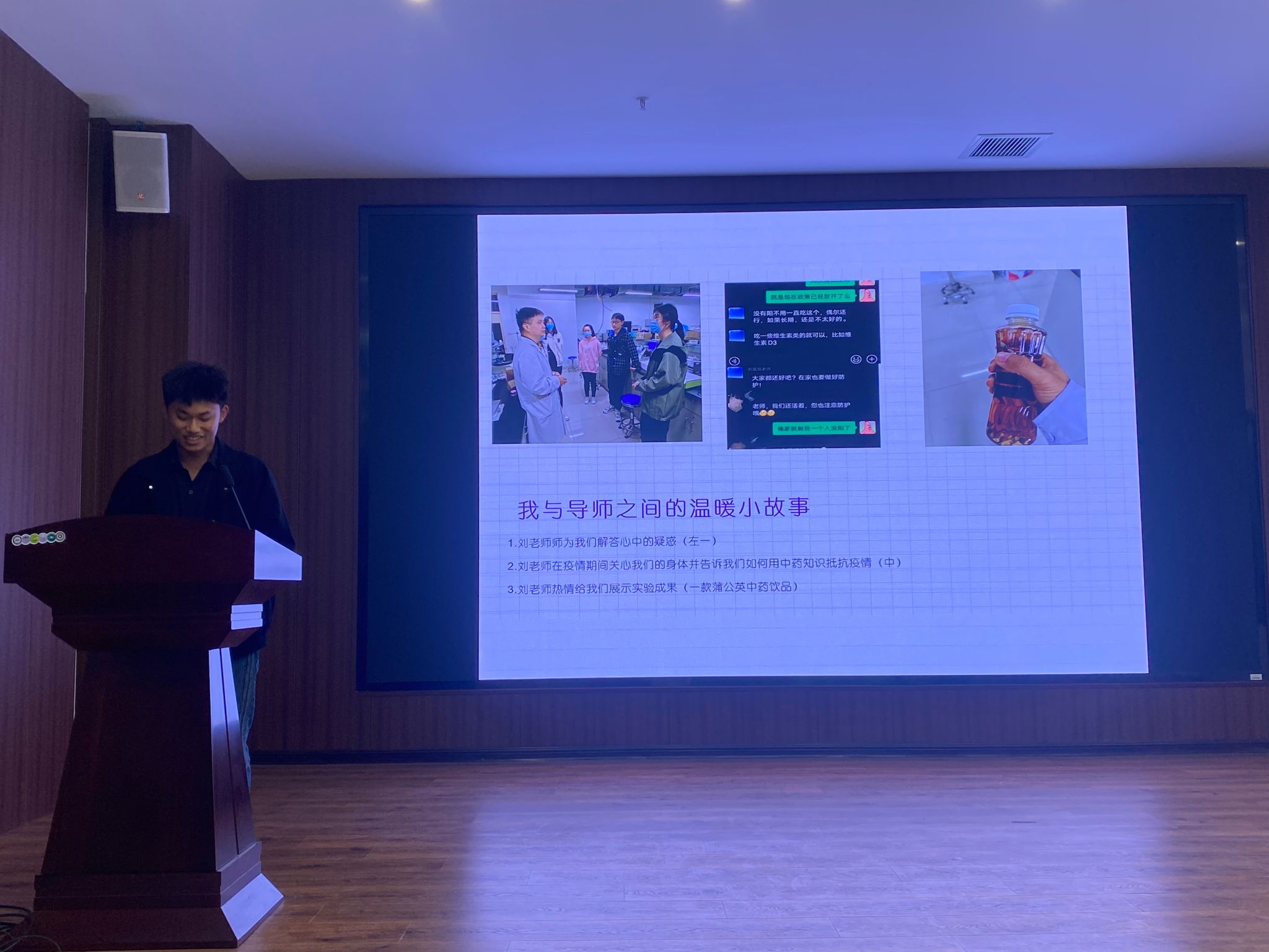 活动过程中,同学们依次上台讲述和导师之间的故事。一帧帧老师带领他们做实验的画面,一声声师生间互相关怀的话语,一次次线下线上的学业交流,老师们坚守着自己的岗位,以自我灵魂之火点燃另一个灵魂的绽放。最令人印象深刻的是刘益海同学的分享,在讲述中多次谈到他的导师是个幽默风趣又关心学生的优秀教师,在日常生活中他们交流密切,互相关怀,形成了亦师亦友的师生情谊,并荣获一等奖。天涯海角有尽处,只有师恩无穷期,浓厚的尊师重教氛围、良好的师风师德正在17k小说