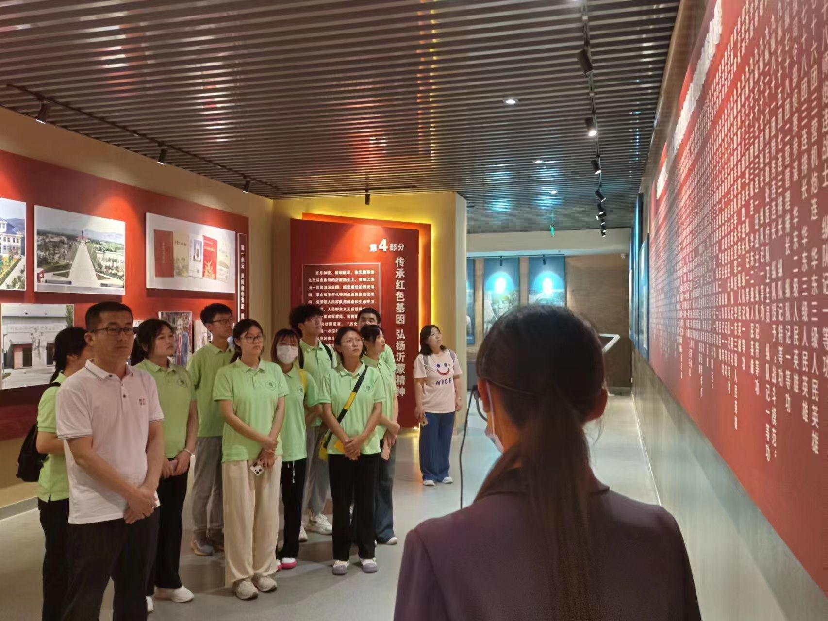 社区师生党员在讲解员的带领下进一步了解沂蒙精神,坚定共产主义信念。展馆中一张张图片、一件件旧物,承载着孟良崮战役可歌可泣的英雄事迹。同学们在陈毅、粟裕等英雄人物事迹展板前久久驻足观看,也看到了“沂蒙红嫂”明德英乳汁救伤员的铜像原型、沂蒙人民运送物资的木推车,被革命先烈和沂蒙人民的英勇奋斗、无私奉献的精神深深触动。最后,师生登上孟良崮山,亲身体会战士们在孟良崮战役翻山越岭、对敌人围追堵截的艰辛,真正感受到革命胜利果实的来之不易。