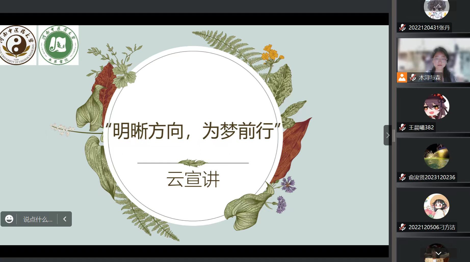 于2023年10月12日举办“明晰方向,为梦前行”云宣讲活动,职业生涯发展协会承办。