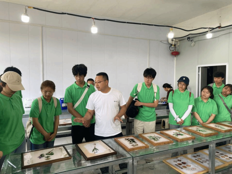 中药经典焕新姿,创新实践续传承。书院一行人首先来到企业中药饮片加工区域,同学们在公司总顾问夏伟老师的讲解下学习到典型中药材的辨识特点及易混中药材之间的区别。随后来到固化腊叶区,在夏伟老师的引导讲解下,参观了各类中药植物标本,了解了各类中药植标本的制作步骤。同时,同学们动手体验蒲公英标本制作中尤为重要的一环——压制,通过亲身体验感受中药标本制作工艺的严谨与精湛。