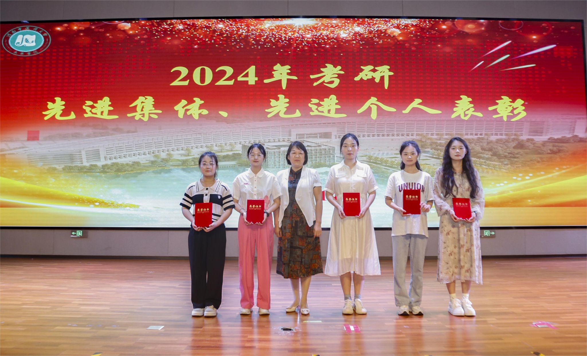 关于表彰2024年考研先进集体、先进个人的决定》,对5个全员上岸宿舍、10名高绩点分保研学生和20名考研高分同学给予表彰。随后,与会领导依次为同学们颁发“考研之星”先进集体和先进个人荣誉证书。