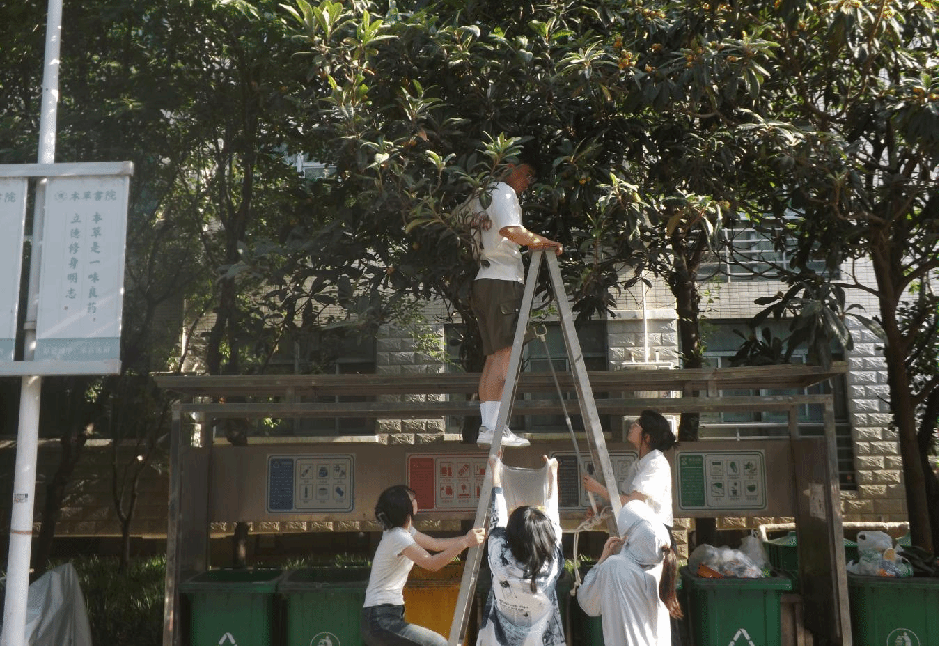润物于无声之处,育人在点滴之中。活动开始前,老师给同学们讲解了枇杷采摘的方法和安全注意事项。随后,同学们以寝室为单位领取社管会提前准备的采摘果实的杆子。活动中,同学们互帮互助,有的负责摘高处的果实,有的负责接住掉落的枇杷,还有的忙着将采摘的枇杷放入篮子。树上树下,摘的摘,接的接,满是劳动的影子。每个同学的脸上都洋溢着笑容,每个袋子里都装满了丰收的喜悦。