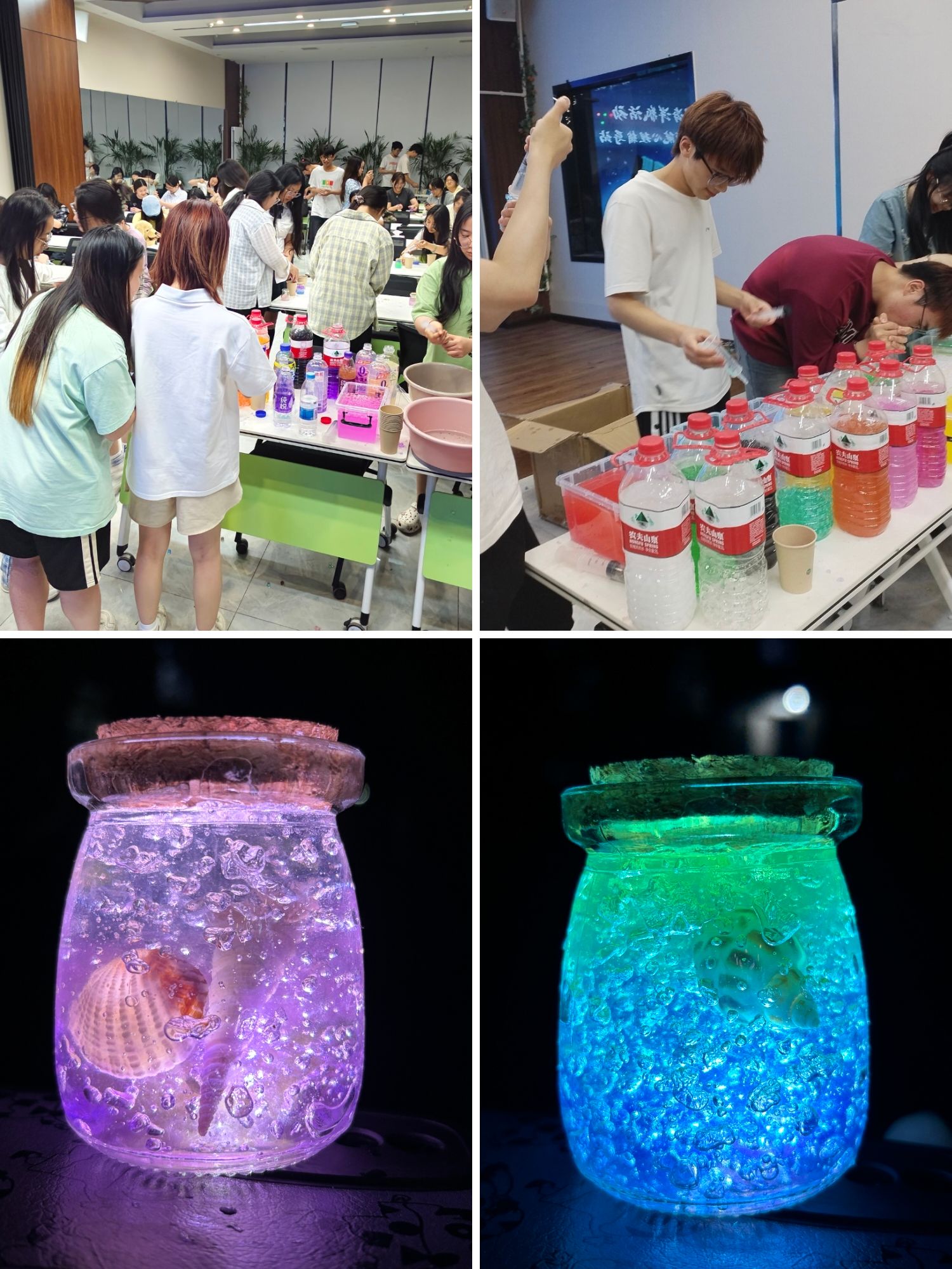 本次活动以“放飞心情,拥抱自我”为目的,同学们怀揣着对未来的期待与向往以及对当下生活的审视与欢慰。在大家的精心制作下,如梦似幻的各色海洋瓶便呈现在众人面眼前,承托着同学们对当下的、对未来的情思,愿梦想能与夏光同长!
