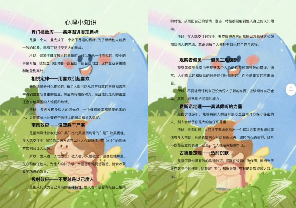 本次活动旨在引导同学们在收集心理小知识的过程中,深入识别并理解自己的情绪变化,进而实现自我认识、自我了解、自我发展与自我调节。在活动中,辅导站收到了许多富有创意的投稿,内容丰富多彩,既有来自日常生活的平凡小事引发的深刻心灵感悟,也有实用的心理调节小技巧,还有书中读到的心理科普知识、“心灵鸡汤”。更有一些具有心理指导作用的寓言故事,以生动的方式传递着心理健康的智慧。活动期间,同学们以积极向上的心态参与活动,分享阳光、开朗、富有教育意义的内容,不仅提升了自身的心理素质和解决问题的能力,也激发了大家对心理健康的关注和重视。