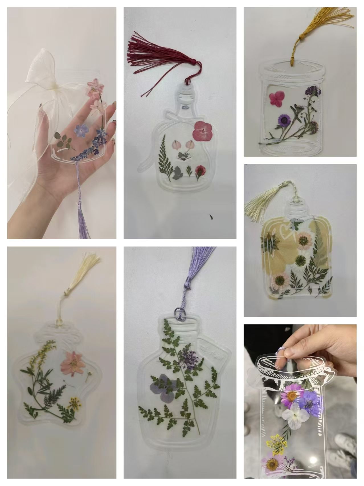 活动现场,心理辅导站准备了精致的花包材料以及各式各样的书签,同学们认真挑选完所需的花朵样式后,就开始制作各自的压花书签作品。制作过程中,同学们充分发挥自己想象力,将形态各异、五彩缤纷的花草组合成想要的形状,并粘贴在已准备好的书签袋中封好。将封号好的书签袋压平后,利用打孔器在书签合适的位置打孔,并绑上自己喜欢的流苏,一个个精致且具有着美好寓意的书签就完成了。每一个制作好的书签,都展现出同学们的想象力和创造力,也将同学们心中对自然的热爱具象化。四季更迭,花开花落是无法逆转的自然规律,将花草封存于书签中,不但体现了对美的追求,更赋予了花草永恒的生命意义。