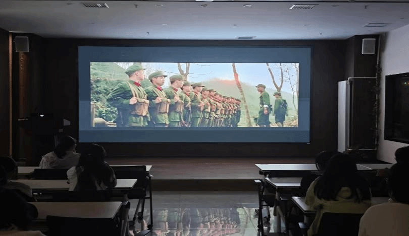 本次活动线下举行。影片《高山下的花环》以对越自卫反击战为背景,主要讲述了连长梁三喜、指导员赵蒙生以及炮兵排长靳开来等人在战前、战中和战后的生活故事。影片中,赵蒙生的蜕变之路,让观众在战火纷飞中看到了人性的坚韧与成长。从最初的青涩与迷茫,到最后的勇敢与担当,他的转变让人心生敬佩,也让人深感战争的残酷与生命的脆弱。活动结束后,不少同学表示,他们对中国人骨子里的红色精神有了更深的感触,会更加珍惜当下的和平,努力维护这来之不易的安宁,铭记战争的教训,避免历史的重演。