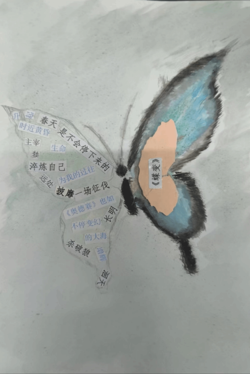 本次活动在远志学堂举行,活动一经发出,同学们积极参与。他们从预先准备好的文字库中挑选出喜爱的诗句、名言和故事段落,用剪刀和胶水将这些文字巧妙地拼接在一起,创作出一首首富有创意和深意的拼贴诗。一些同学巧妙地利用不同字体的组合,传达出内心的细腻情感,另一些同学则通过强烈的对比和色彩搭配,表达出自己对梦想的独特见解,每一个作品都充满了个性。其中2023级药学班和璐嘉同学的作品图文并茂,字里行间流露出的真情实感令人动容,展现了自己对未来的展望和想要追逐的梦想,获得此次活动的一等奖。