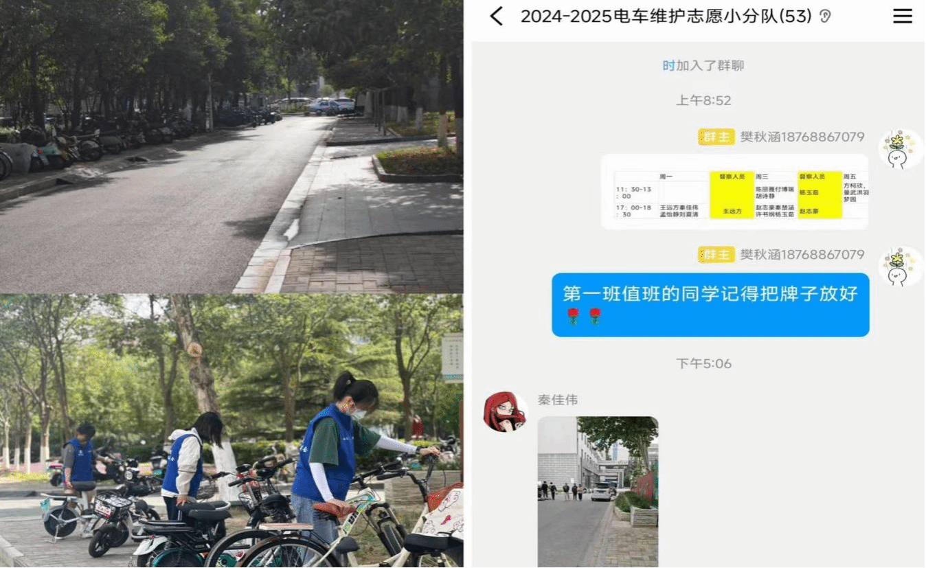 开展非机动车规范停放专项治理活动。自9月份活动开展以来,书院利用社区大屏、张贴海报、班会、班级群广泛宣传学校倡议,重新规划自行车停放区,增设停放指示牌和停车架,同时组建党员志愿服务队在中午晚间高峰期进行电动车秩序维护与引导等。一系列举措得到了广大师生的热烈响应和高度评价,不仅帮助同学们养成良好的行为习惯,也为同学们的安全出行提供了切实保障。接下来,书院将常态化、有序化开展此项工作,为师生提供安全且舒适的学习和工作环境。